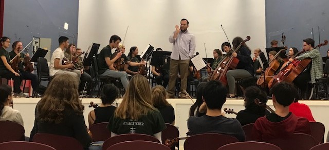 At Arlington HS, where Mr. Tagawa graduated from, CDO and Arlington HS Orchestras performed, and coached by Dr. Adam Boyles (CDO Graduate, now Orchestra Professor at MIT). CDO Orchestra performed the Moorish Dance by Verdi arranged by Mr. Tagawa’s former Arlington HS Orchestra teacher, Dr. Tassone. CDO Orchestra performed Emerald Falcon by Richard Meyer and Irish Legend by Robert Kerr arranged by Soon Hee Newbold.